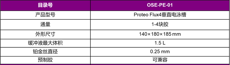 注意: 搭配Proteo Flux4垂直电泳槽所需的制胶配件需单独购买,目录号为OSE-PE-A01。